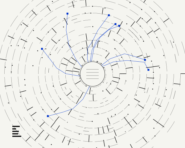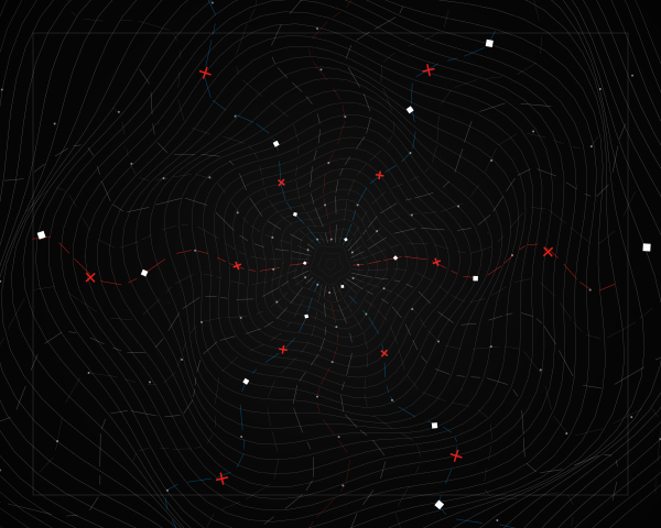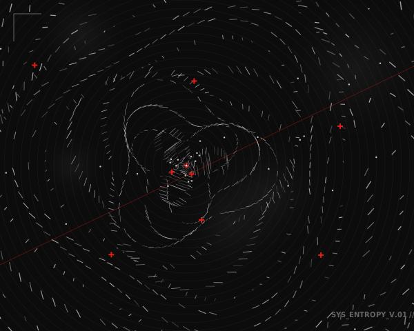 The work successfully avoids the pitfalls of other pieces - it's not purely organic (sketch_000), not overly sparse (sketch_007), and not visually overwhelming. Instead, it bridges systematic mathemat