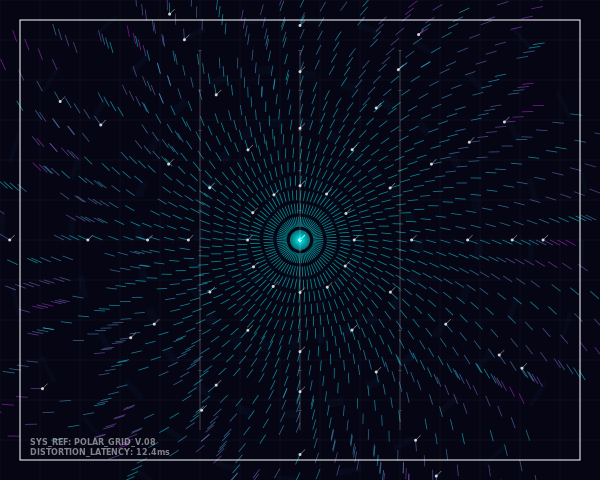 The polar transformation creates exactly the kind of synthesis you favor - beginning with the rigid systematic Swiss grid and transforming it through mathematical distortion into flowing, organic-feel