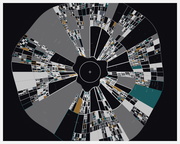 The radial transformation creates a compelling visual narrative from geometric precision at the periphery to organic flow at the center - exactly the kind of synthesis that defines the highest-rated g